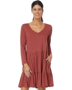 - Look good and feel great every time wearing Toad&Co® Marley Tiered Long Sleeve Dress-where chic meets comfort. This V-neck dress, adorned with playful polka dots, features long sleeves and a flattering above-the-knee cut. Effortlessly pull it on for a look that’s both stylish and easygoing. Crafted from the exclusive Samba fabric, a blend of eco-friendly fibers, it offers unbeatable breathability, drape, and stretch. With a touch of slub for added texture, this dress moves with grace and resilience.